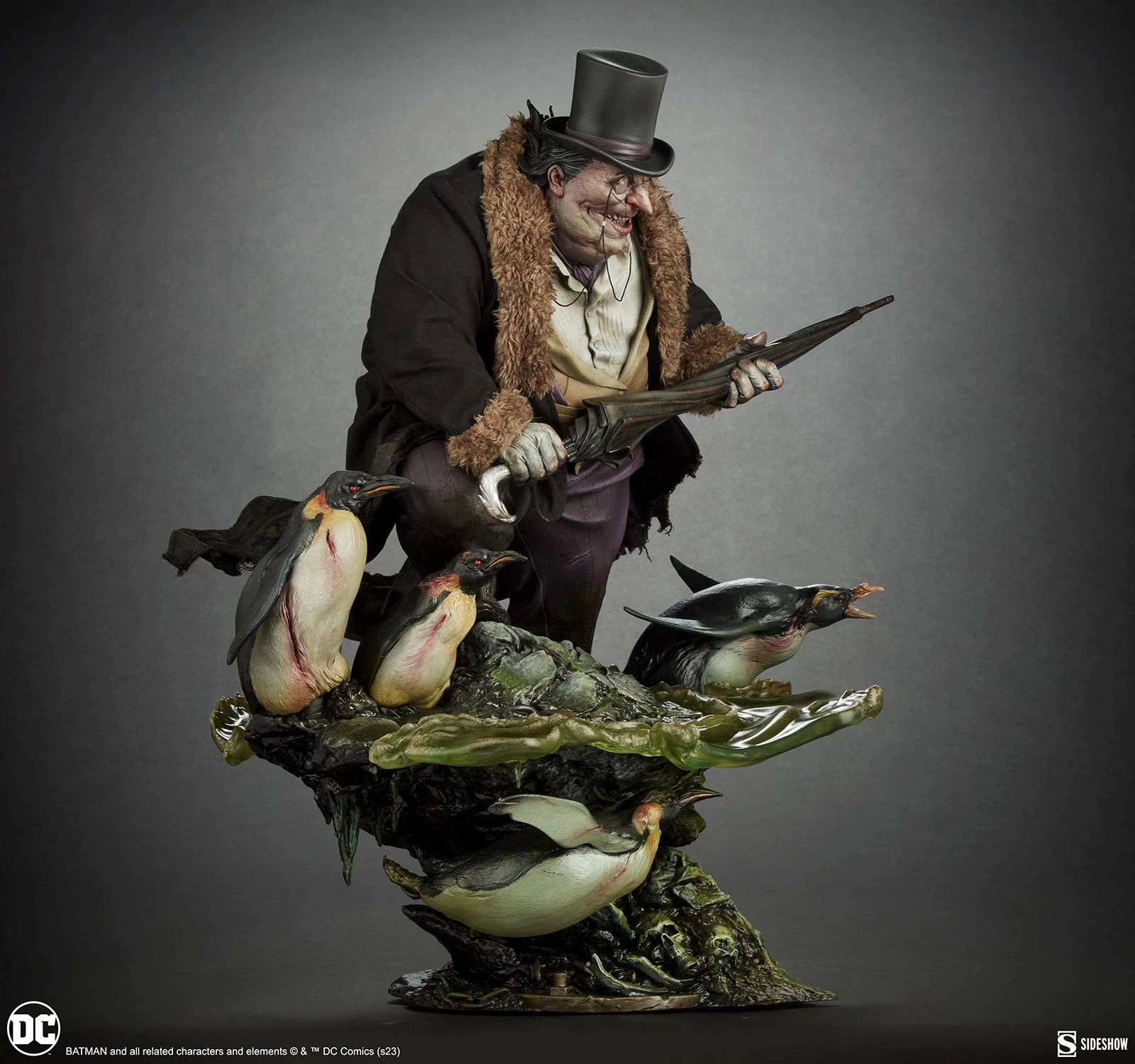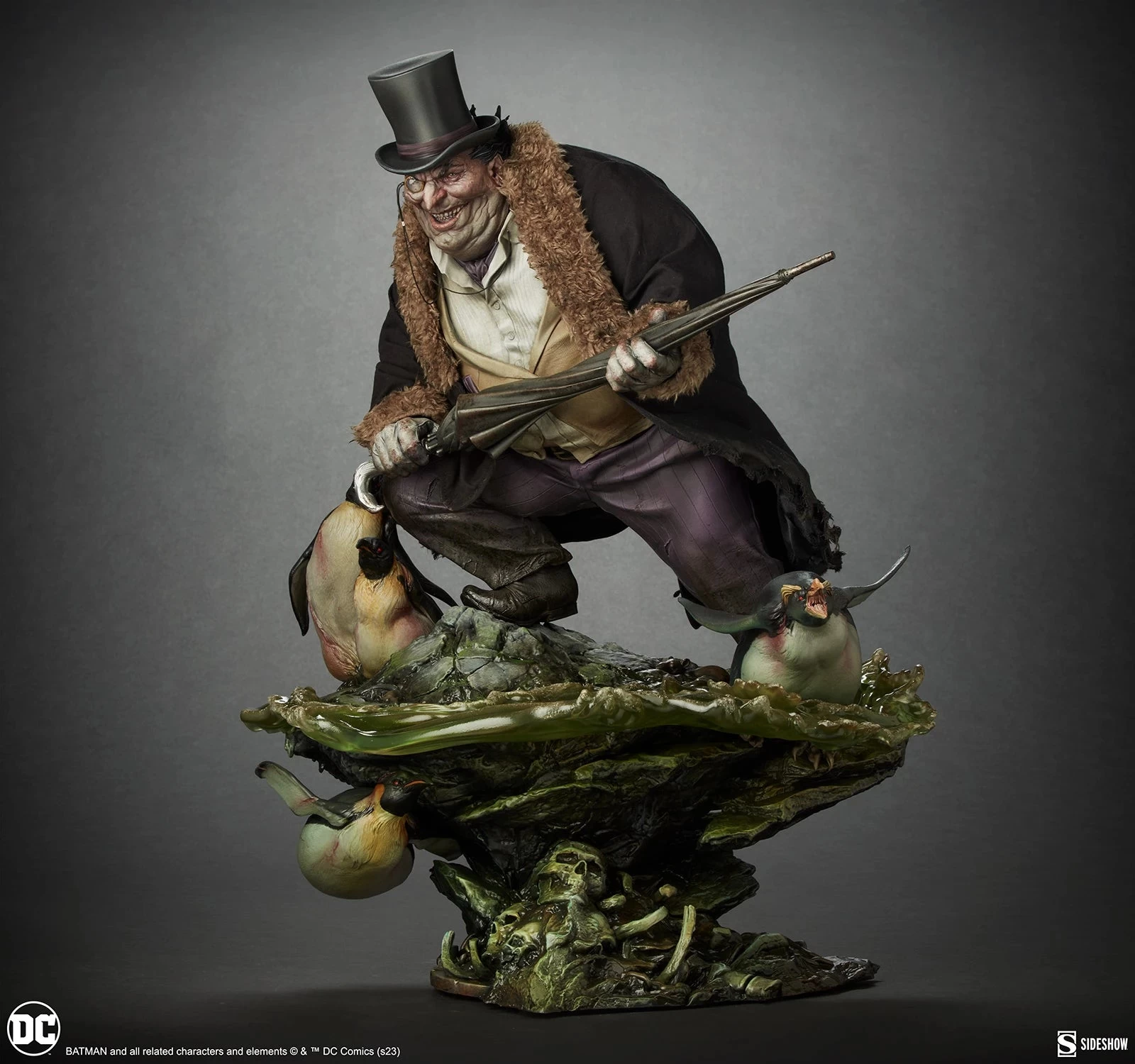 Pair The Penguin up with other Gotham City villains like The Joker, Poison Ivy, or Catwoman to face off against your favorite Batman statues with a touch of class.