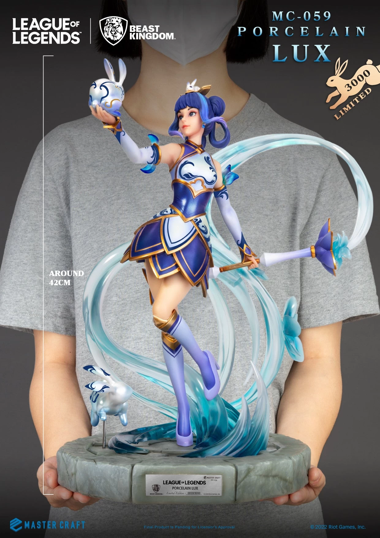 The League of Legends, the gaming phenomena that has swept the world, is ready to launch a variety of Chinese-inspired designs soon after the Lunar New Year. In 2023, fans can enjoy a ‘Blue and White Porcelain’ theme under Beast Kingdom’s high-end Master Craft series, where the popular character ‘Lux, the Lady of Luminosity’ will get her very own luxury statue design. Wearing a blue and white lacquered costume, holding her favorite porcelain shaped rabbit in one hand, and carrying her infamous lotus shaped wand in the other, Lux is every bit majestic as she is powerful! Recreating her exquisite expression and appearance, the MC-059 delicately represents the character with detailed carving, and professional grade painting techniques. Limited to only 3,000 pieces worldwide, the MC-059 is for serious fans of the Lux character. Order yours from an official Beast Kingdom outlet today!