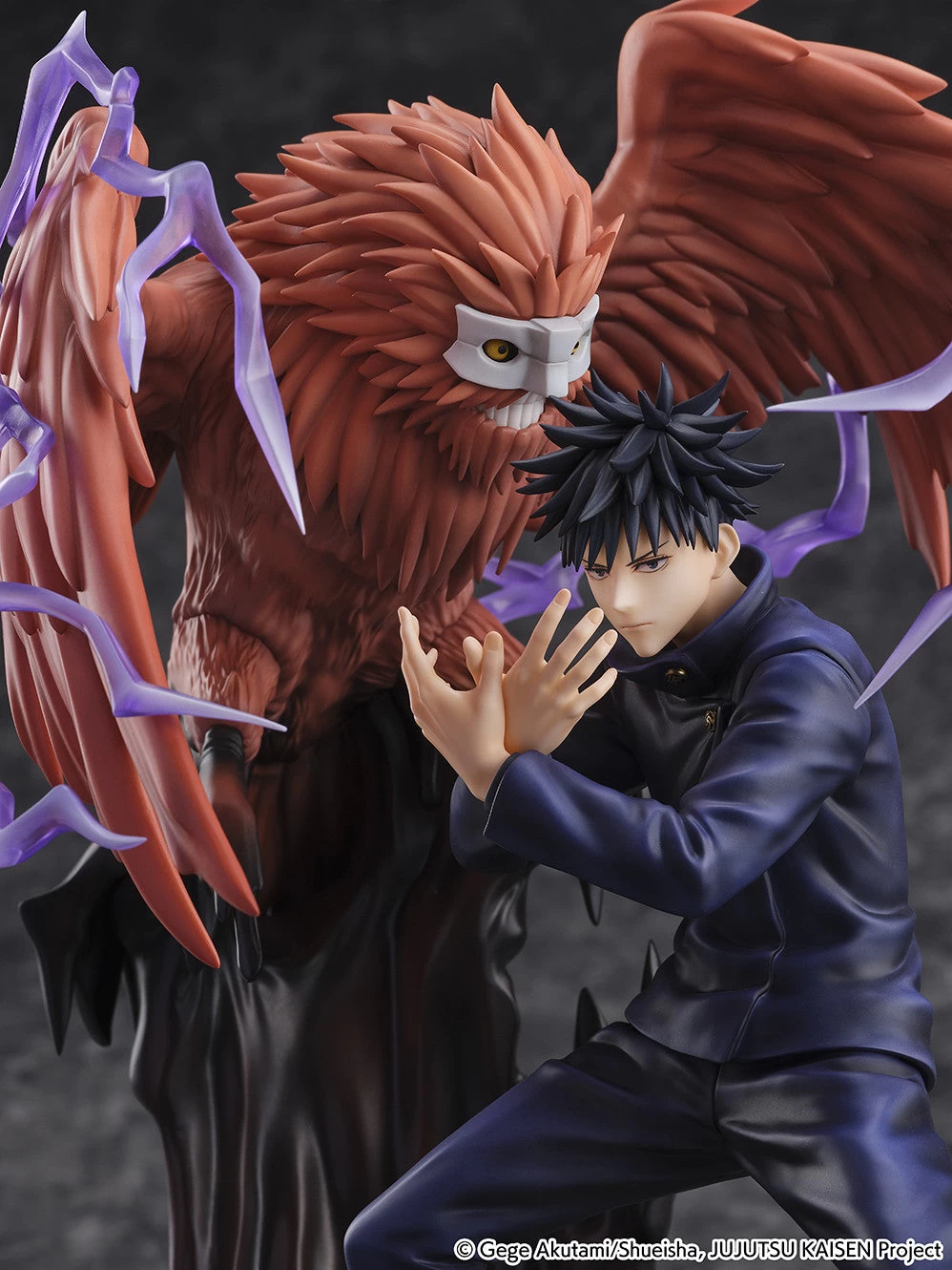 From the TV anime series Jujutsu Kaisen, Megumi Fushiguro is now available as a 1/7 scale size figure! It captures the moment when he uses his Ten Shadows Technique to summon the Shikigami “Nue”! This figure excels in its attention to detail, from his hands to the sharp intensity of his gaze. Nue’s expansive wings and lifelike textures in its feathers and legs are eye-catching. Immerse yourself in the world of Megumi Fushiguro, the Shikigami user, through this exceptional scale figure.