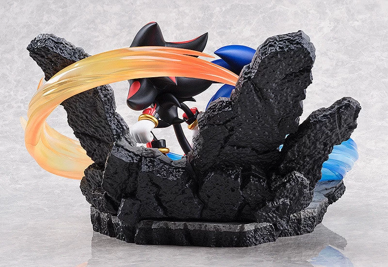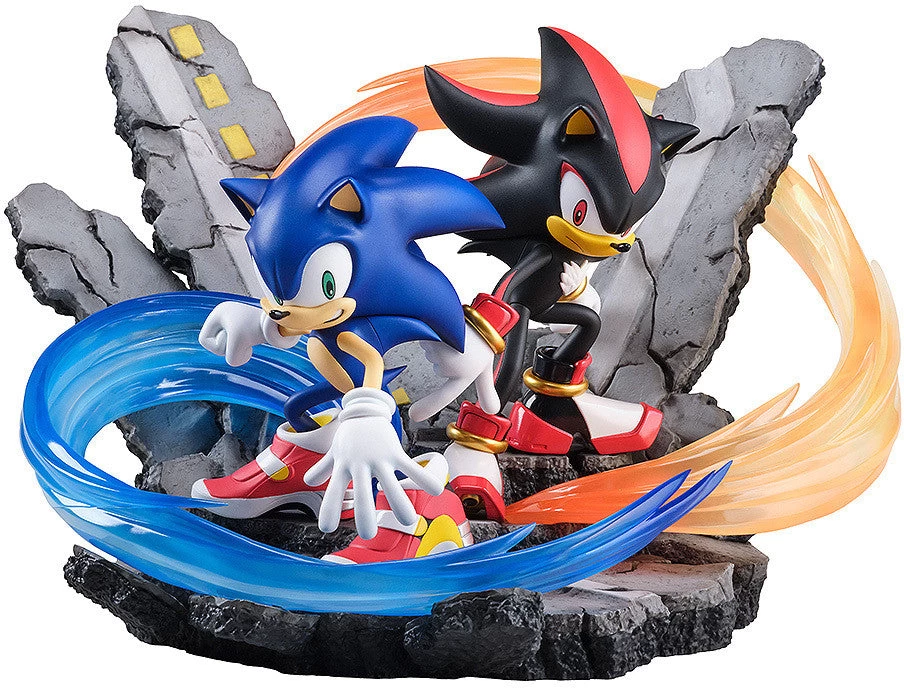 From Sonic Adventure 2, the game that delighted fans around the world with it’s breakneck speed and spectacular action, both heroesSonic the Hedgehog and Shadow the Hedgehoghave been sculpted into one incredible figure for S-FIRE, the innovative SEGA hobby brand. This figure was designed as an exact replica of the iconic original box art for Sonic Adventure 2. To accomplish such a momentous task, S-FIRE worked in close cooperation with Sonic Team themselvesscrutinizing every specification and detail to ensure that the modeling data was perfect. The various materials used for fabrics, leather, and metal are brought to life using S-FIRE’s realistic modeling technology and vibrant color techniques, which allow you to see the exquisite detail in everything from Sonic’s Grind Shoes to Shadow’s rings!