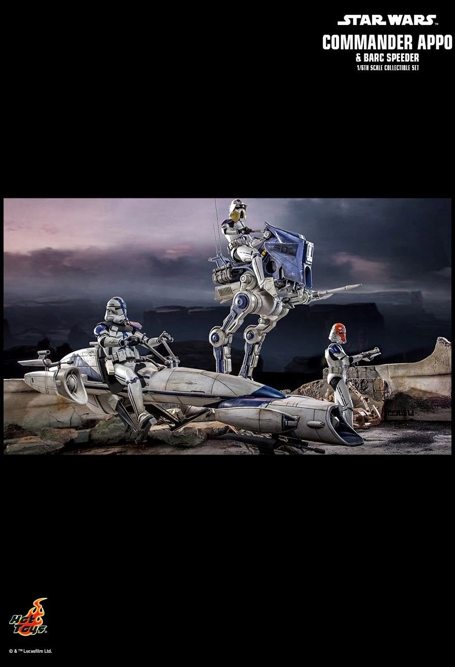 Hot Toys is excited to be expanding its Star Wars collectibles line up today by introducing a greatly detailed 1/6th scale collectible set featuring Clone Commander Appo and a 501st Battalion BARC Speeder inspired by the popular Star Wars: The Clone Wars animated series!