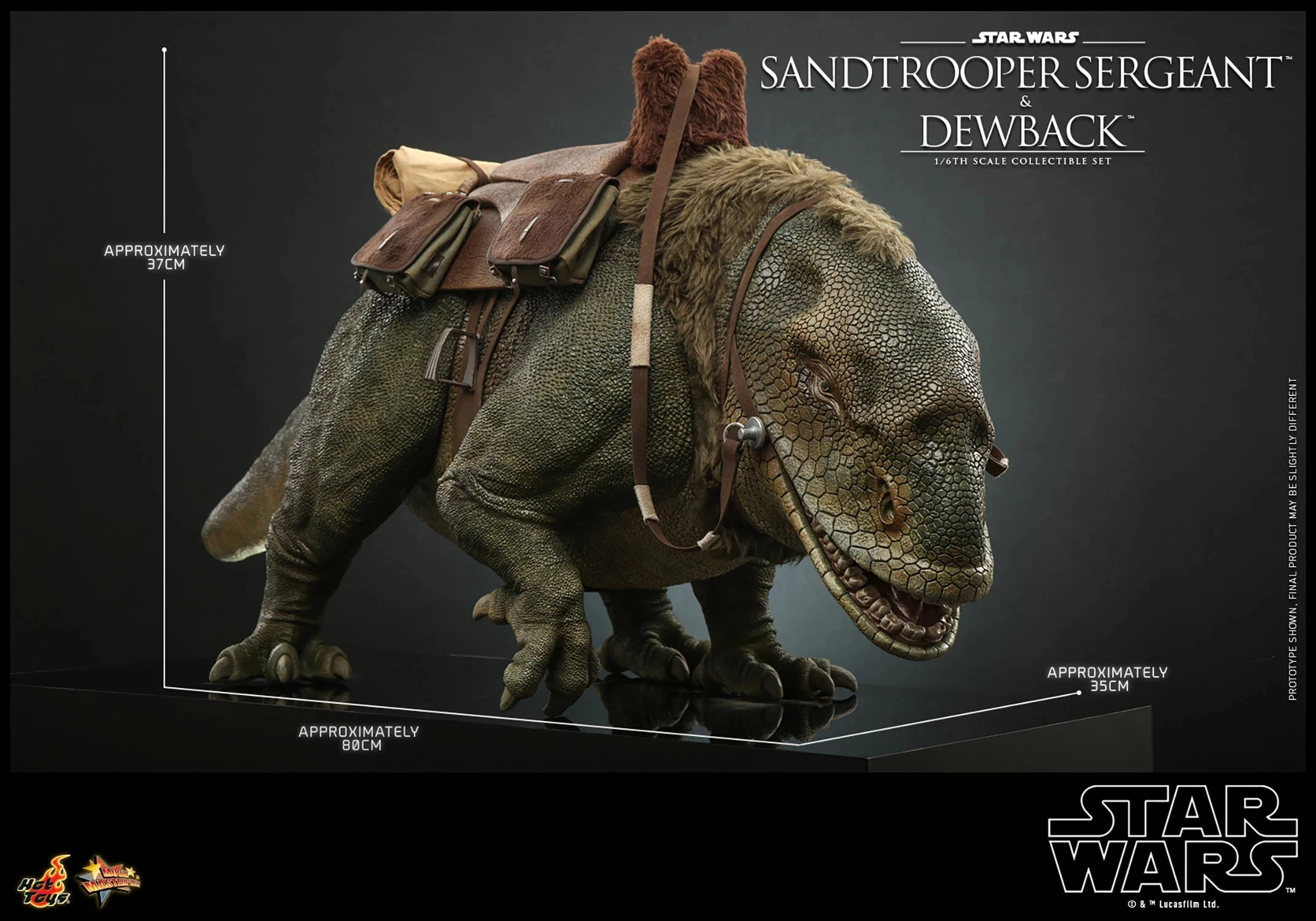 The highly-accurate Dewback collectible figure is skillfully developed based on the appearance of the creature in the film. Approximately 80cm in length, the magnificent Hot Toys collectible features greatly detailed head and body texture, an interchangeable open-mouth head, and a saddle for its rider!