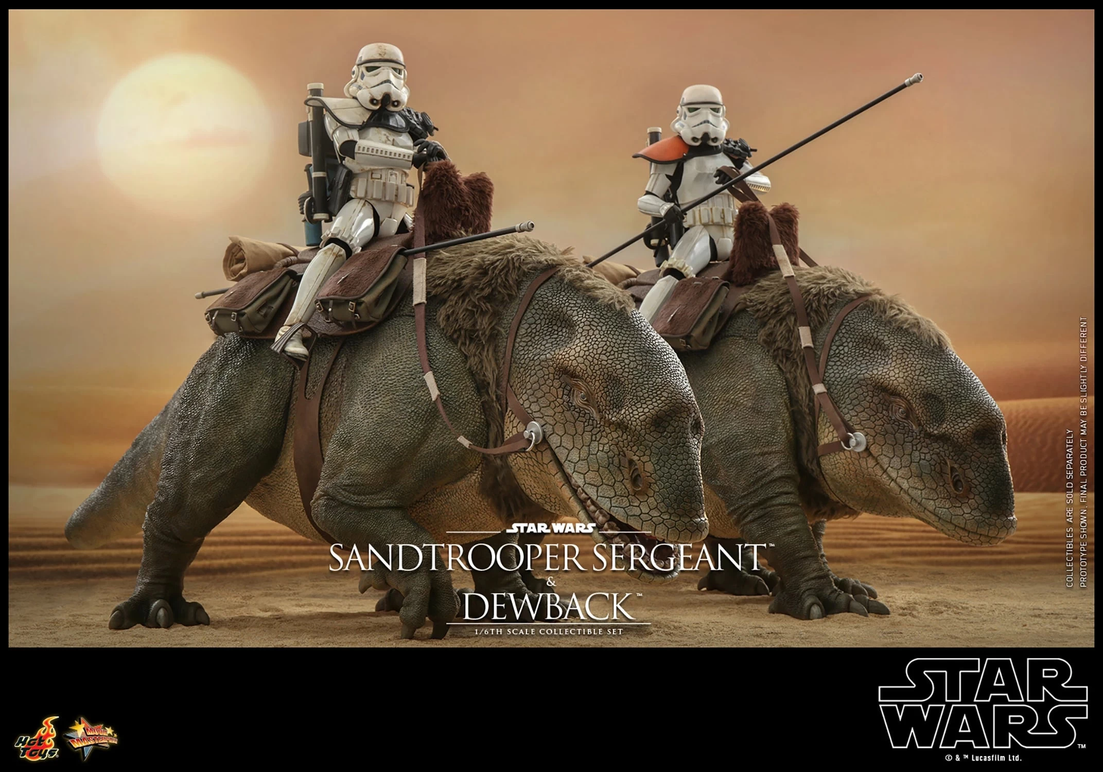 Sideshow and Hot Toys are thrilled to introduce an astonishing sixth-scale collectible Star Wars action figure set featuring the Sandtrooper Sergeant and Dewback inspired by Star Wars: Episode IV A New Hope to recreate the iconic scene where the Sandtrooper uses the rod staff to control the large reptile creature of Tatooine.