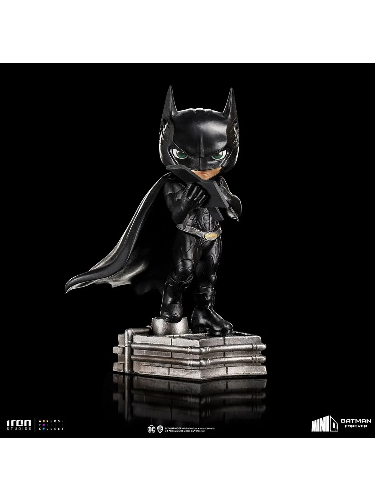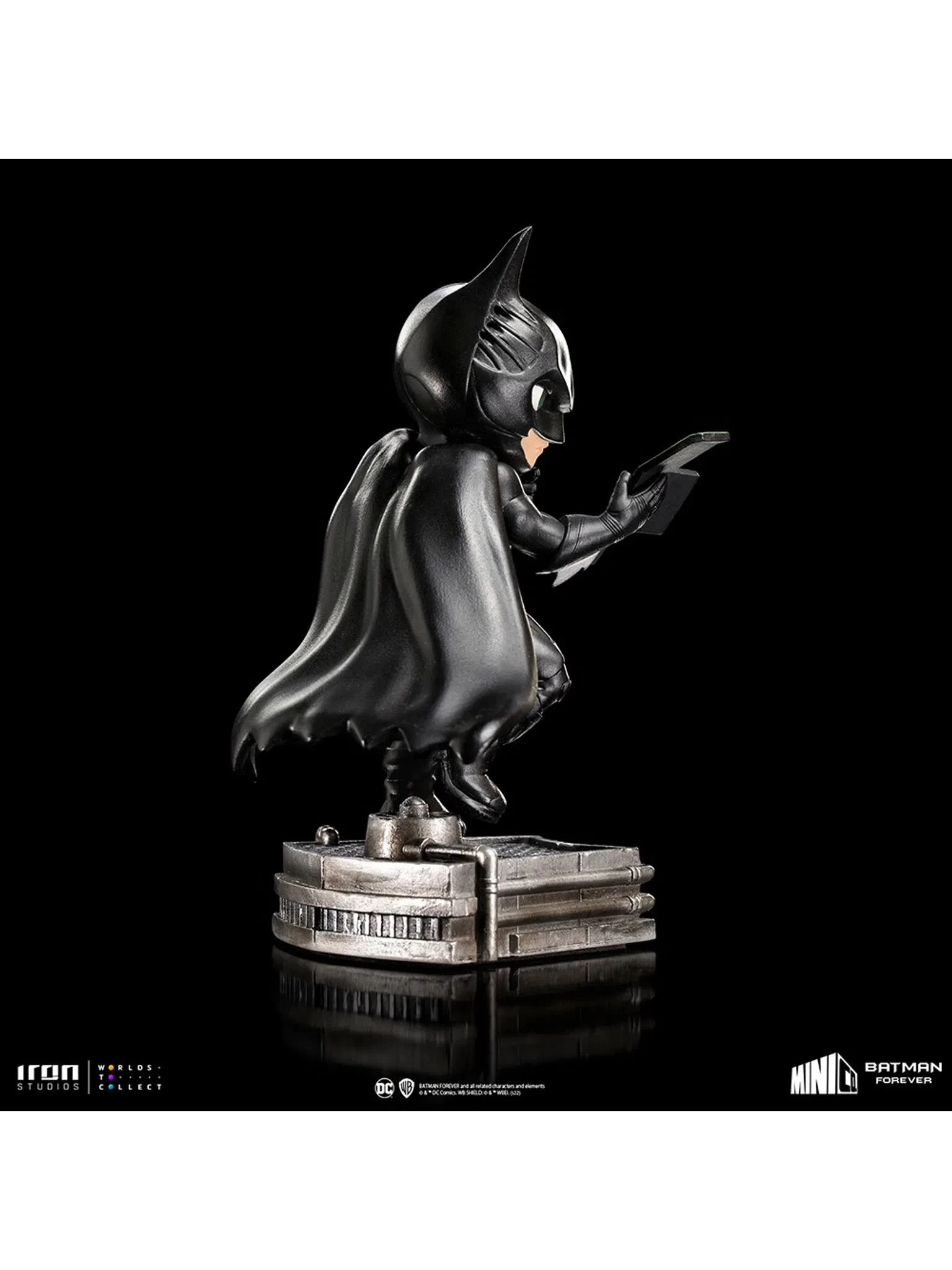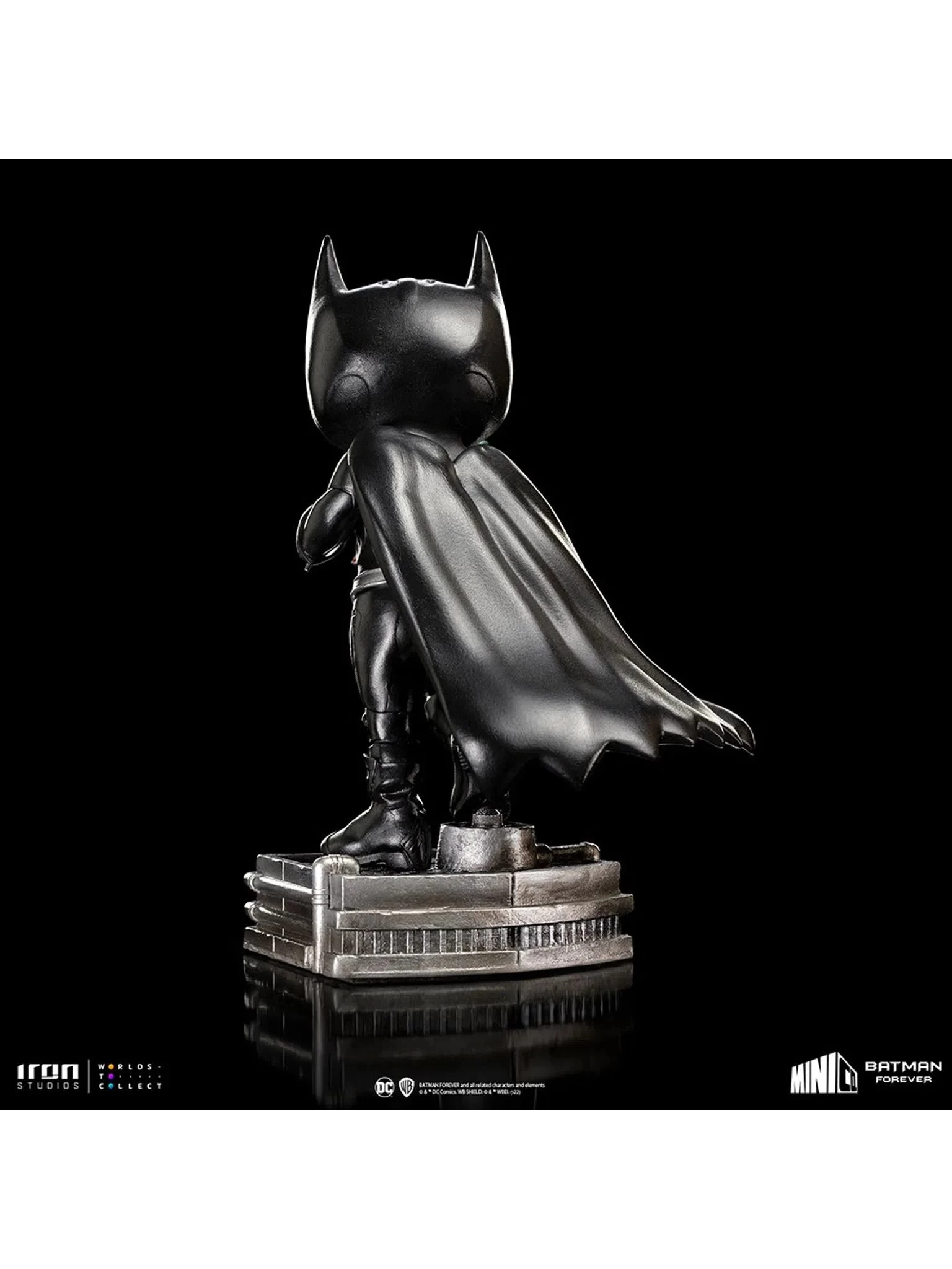 On a platform in his headquarters, the detective hero protector of Gotham City aims to decipher a riddle on the folding of a card sent to his alter ego, Bruce Wayne. With his cunning, wearing his new and stylish crime-fighting armor, soon he deduces the answer and gets ready to fight a new and mysterious villain. Inspired by the fun cinematographic production directed by Joel Schumacher, Iron Studios bring in their stylized Toy Art format the statue “Batman – Batman Forever – MiniCo”, a movie that brought Val Kilmer replacing Michael Keaton in the main role.