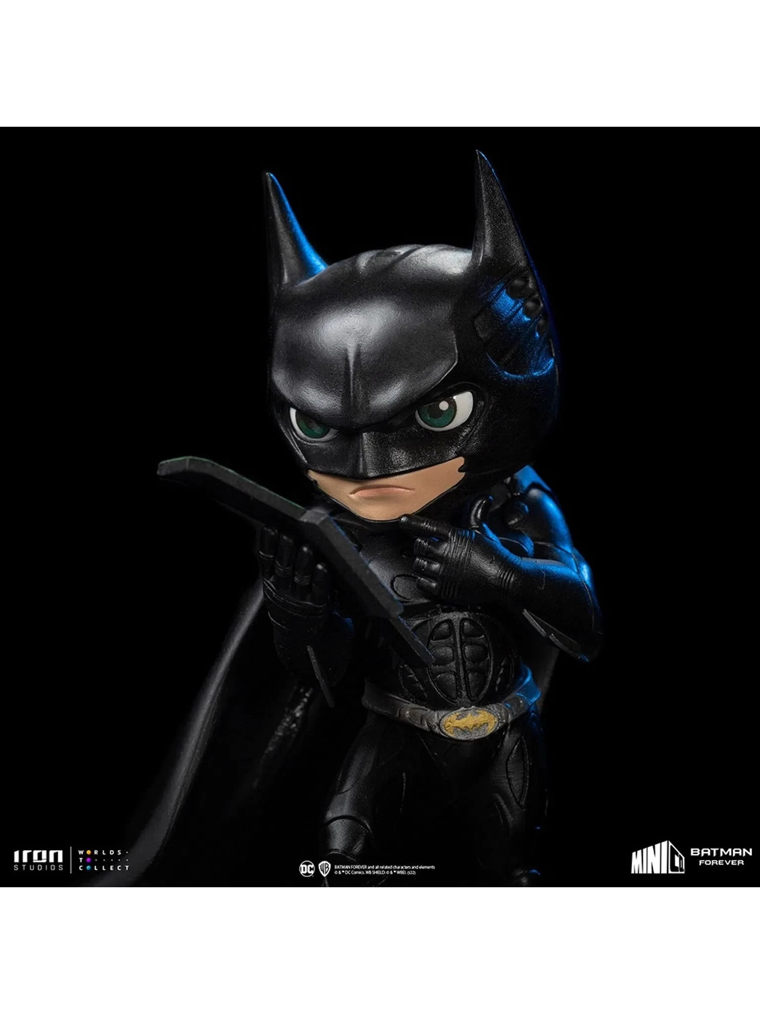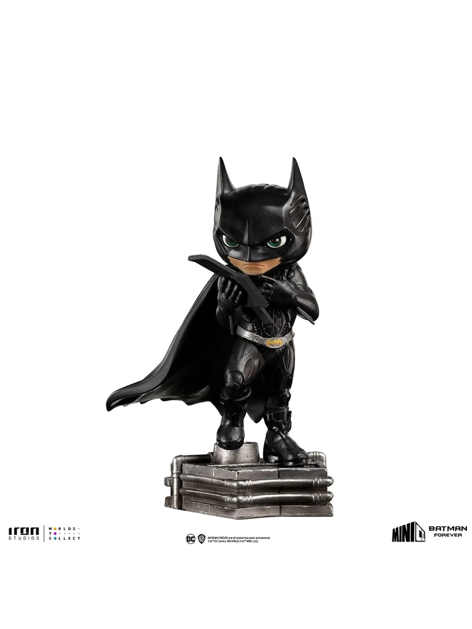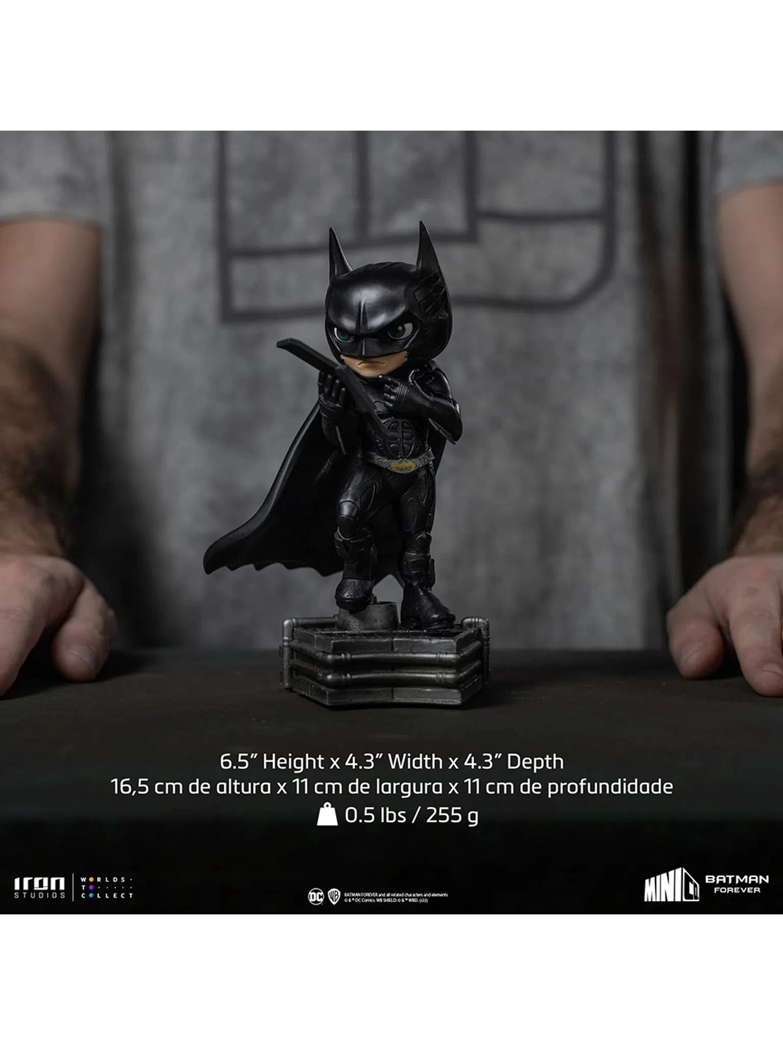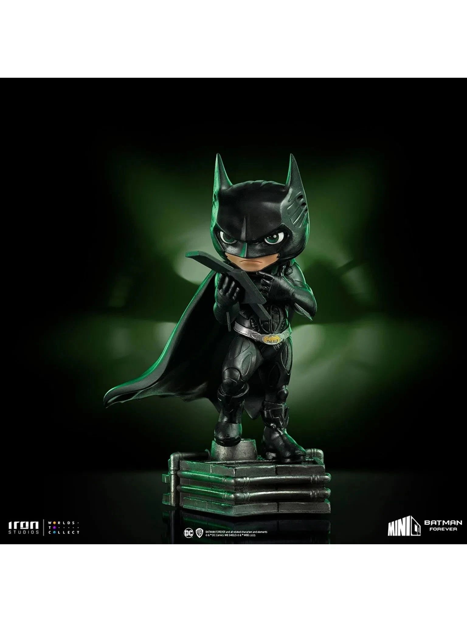 On a platform in his headquarters, the detective hero protector of Gotham City aims to decipher a riddle on the folding of a card sent to his alter ego, Bruce Wayne. With his cunning, wearing his new and stylish crime-fighting armor, soon he deduces the answer and gets ready to fight a new and mysterious villain. Inspired by the fun cinematographic production directed by Joel Schumacher, Iron Studios bring in their stylized Toy Art format the statue “Batman – Batman Forever – MiniCo”, a movie that brought Val Kilmer replacing Michael Keaton in the main role.
