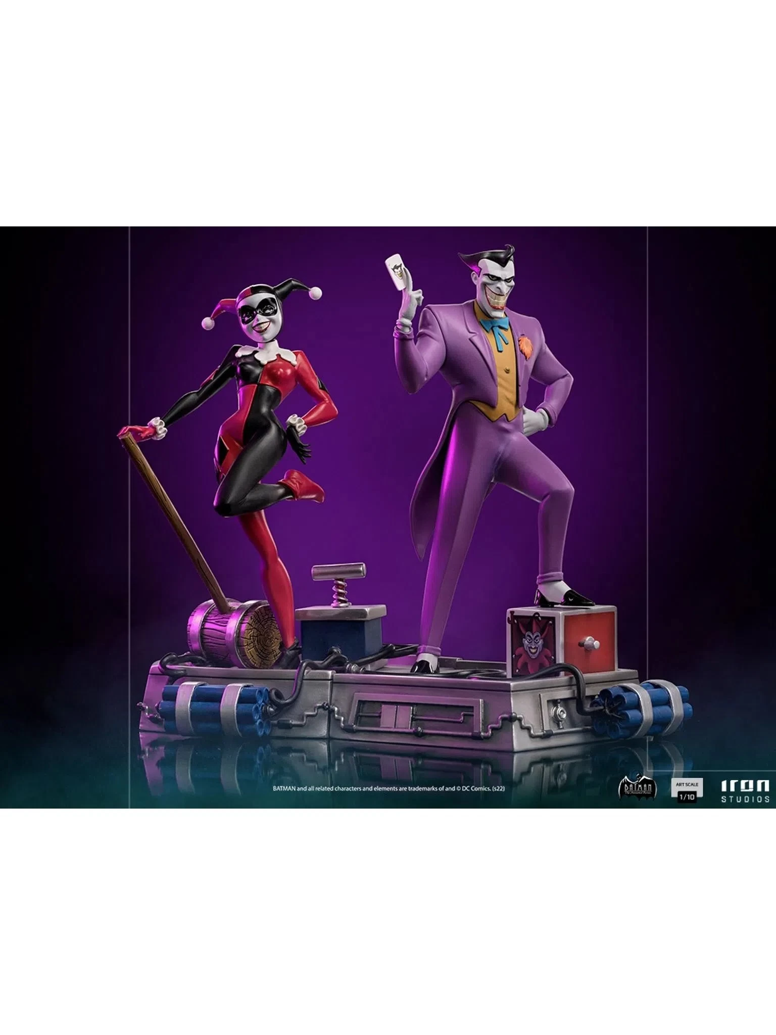Leaning on her big wooden hammer, a weapon she uses with extreme ability despite its heavy appearance, Gotham’s Maid of Mischief poses on her right leg with the grace of a ballerina, thanks to her skills as an acrobat and gymnast. On a technological pedestal, with a Blasting Machine (an electric current portable explosive’s detonator) by her side, wearing her original black and red costume, patterned with diamonds just like in the deck’s suit, with the characteristics of a court buffoon of her boss and boyfriend, Iron Studios bring the statue “Harley Quinn – Batman The Animated Series – Art Scale 1/10” with the classic villain in her original conception by illustrator, animator, and writer Bruce Timm, celebrating the 30th anniversary of Dark Knight’s iconic animated series from 1992, that originated what is called today the DC Animated Universe.