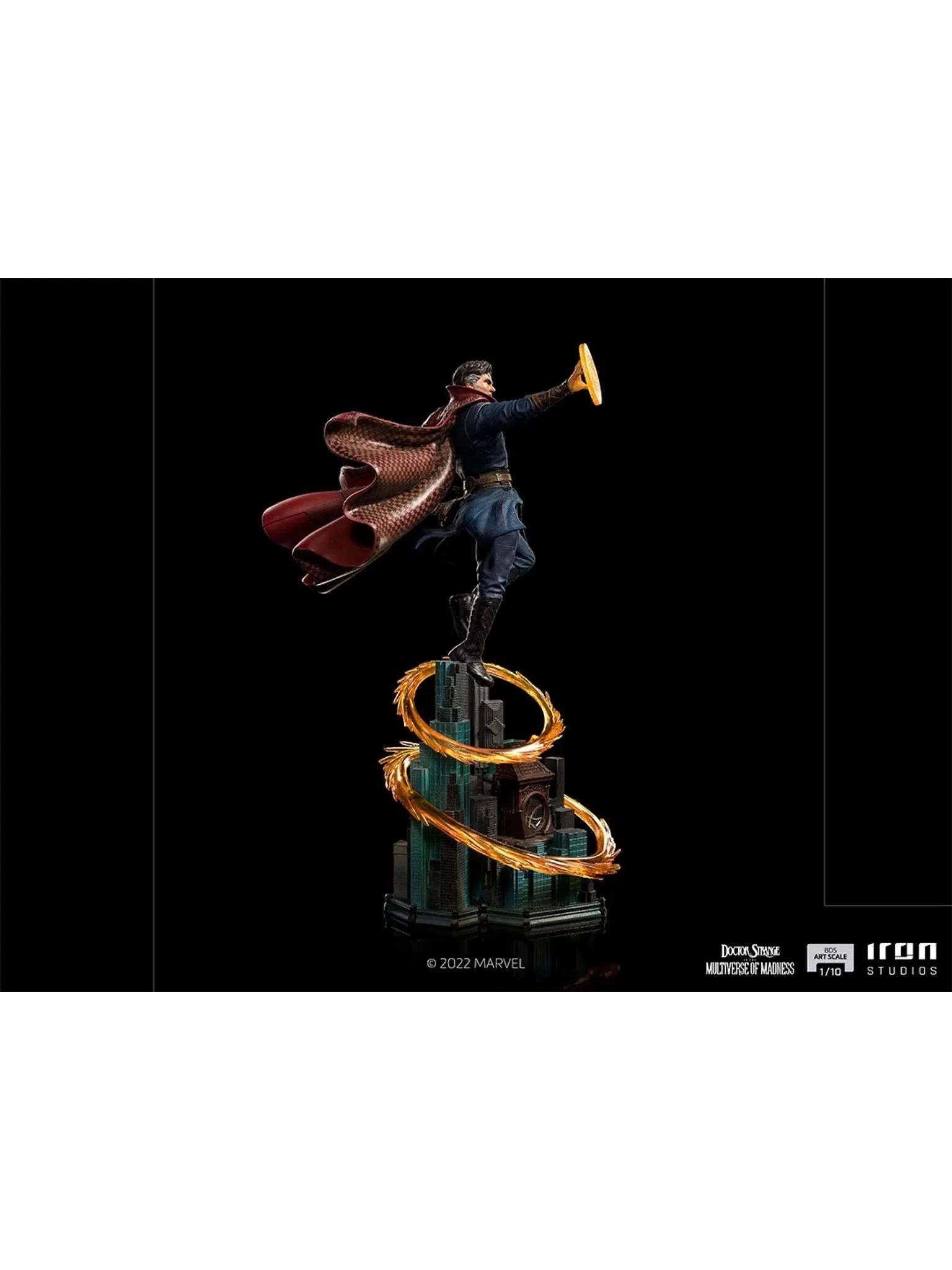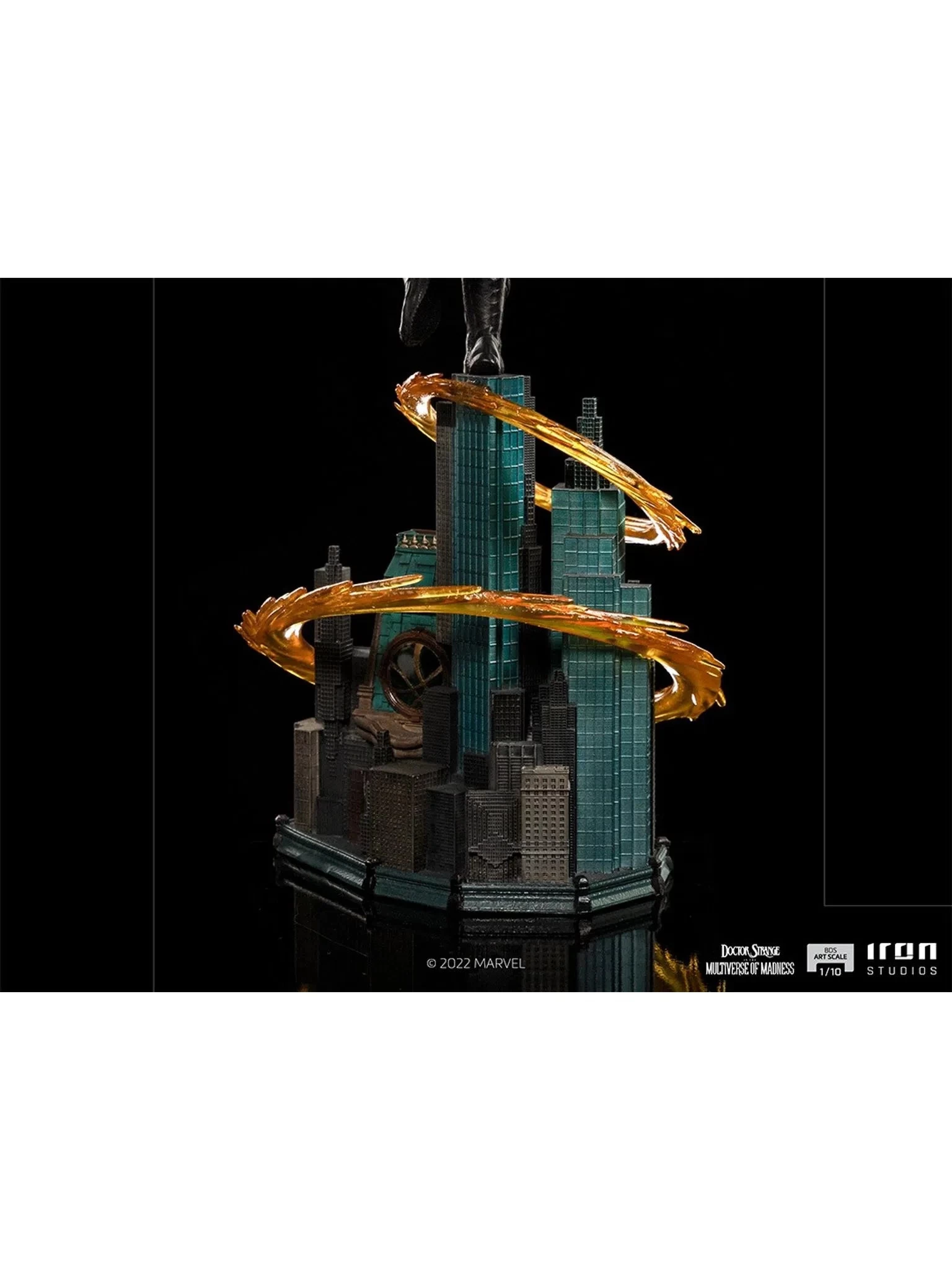 Mystic energy beams encompass New York city as dimensional portals of a multiverse, above where his house and base of operations are. In a magic mansion, known as the Sanctum Sanctorum, the Sorcerer Supreme hovers levitating with the aid of his sentient Cloak of Levitation and casts spells that manifest as translucent mandalas from his hands. As if they were crossing those portals, Iron Studios present their statue “Stephen Strange BDS – Doctor Strange in the Multiverse of Madness – Art Scale 1/10”, inspired by the second movie of Marvel’s most loved sorcerer.