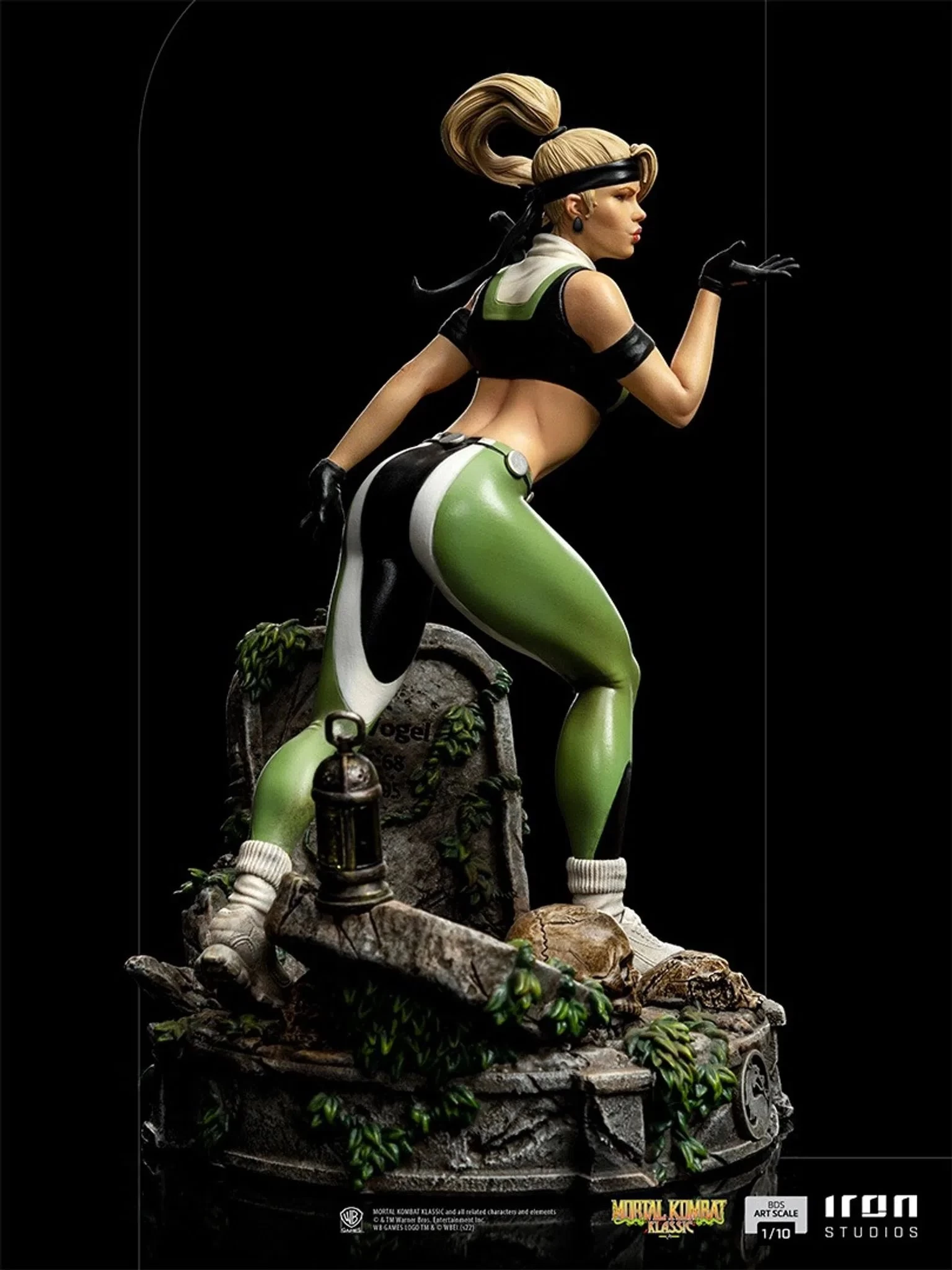 In one of her most classic poses, the stern and relentless fighter directs and blows a kiss that will bring the fatality to whoever challenges her. With old tombs and skulls abandoned at her feet, the pedestal of an old cemetery terrain as seen in one of the game’s stages complement the athletic warrior with golden hair, wearing her classic green and white sportswear with details in black. With her look inspired by her original concept and Mortal Kombat III, Iron Studios present the statue “Sonya Blade – Mortal Kombat – Art Scale 1/10”, with the general of the defending forces of Earthrealm, the name of the world humans call Earth in the Mortal Kombat franchise.