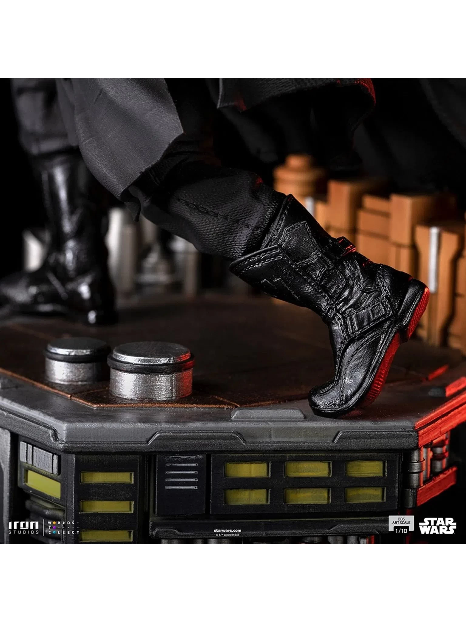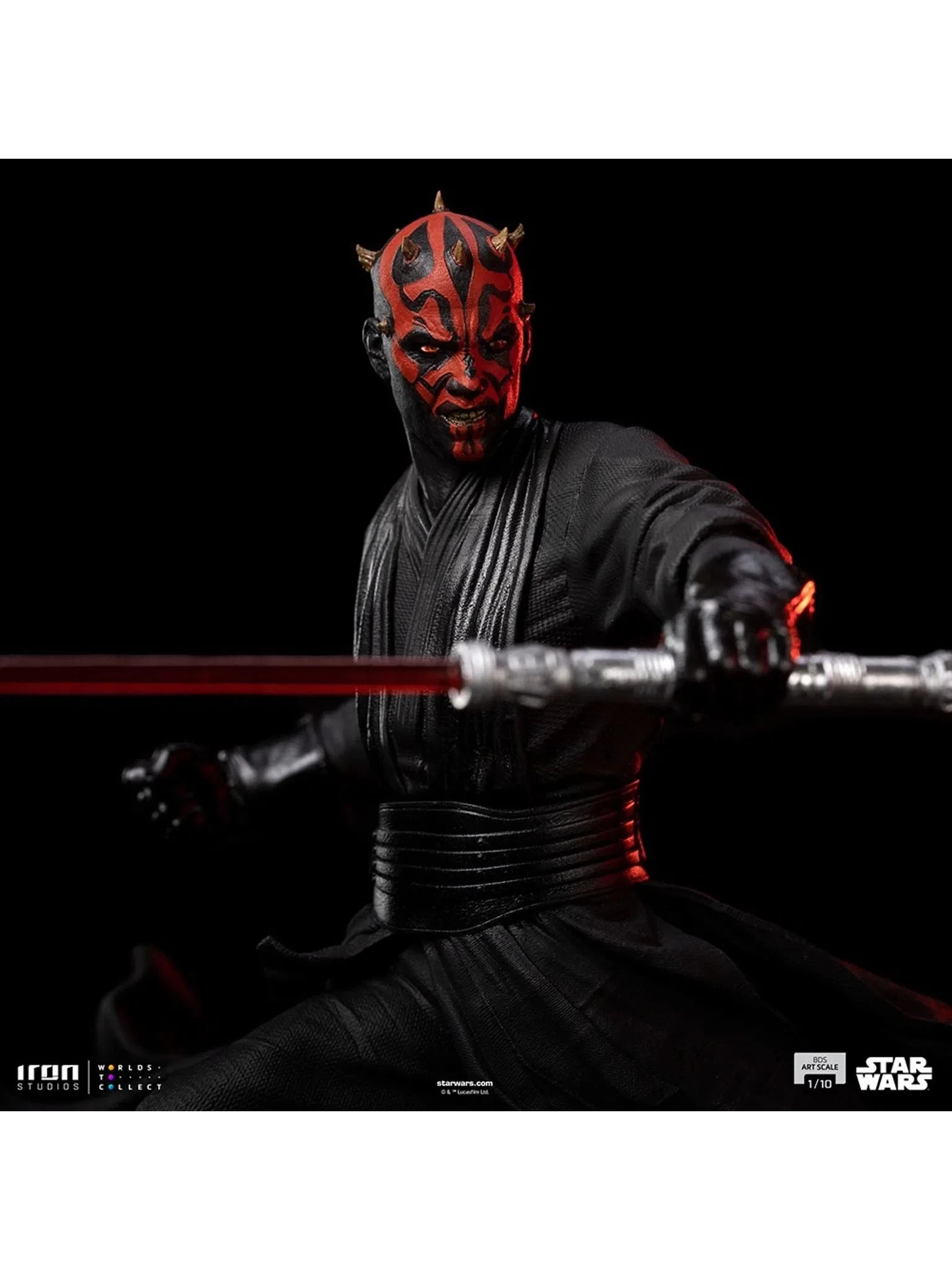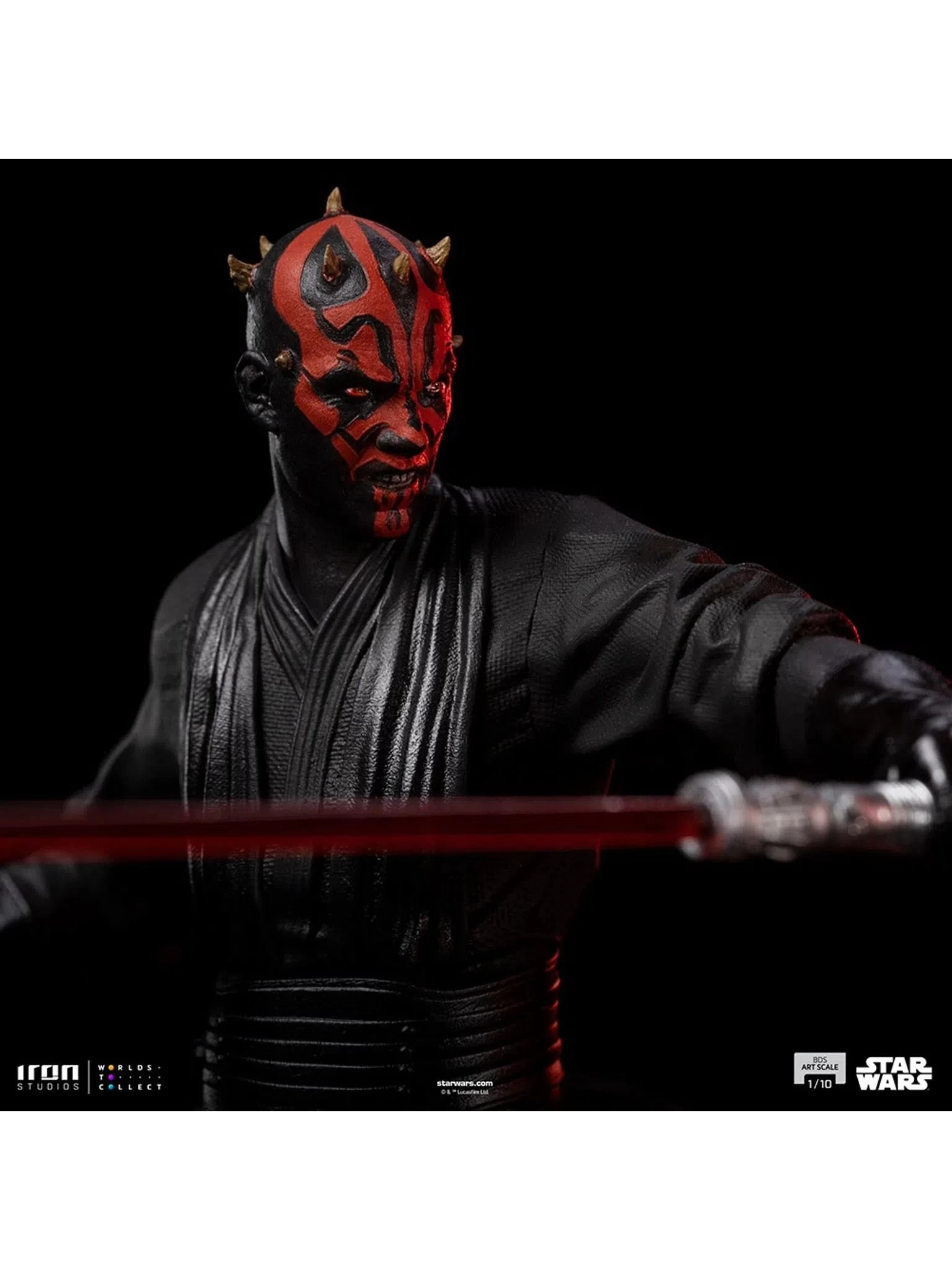 In the Palace of Theed on planet Naboo, the dark Dathomirian Sith warrior with all his skills uses Form VII, also known as Juyo, described as the cruelest combat form with a lightsaber. Adding his knowledge and discipline as a master in Teräs Käsi, a deadly and mystic martial art known in the whole galaxy for its lethality, he became one of the most efficient and lethal assassins among the Sith Lords. Inspired by the iconic dueling scene from Star Wars: Episode I – The Phantom Menace, where he faces the Jedi master Qui-Gon Jinn and his Padawan apprentice Obi-Wan Kenobi with his double-bladed lightsaber, Iron Studios, now with their global license, present the statue “Darth Maul BDS – Star Wars – Art Scale 1/10”. Over a detailed diorama pedestal that refers to the technological scenery of the power plant in Naboo, his expressive facial features gnashing his teeth in fury, all the movement from his pose and textures in his suit are perfectly portrayed in this fantastic figure, that undoubtedly brings immediately to the mind of all the fans the music track Duel of the Fates by composer John Williams.