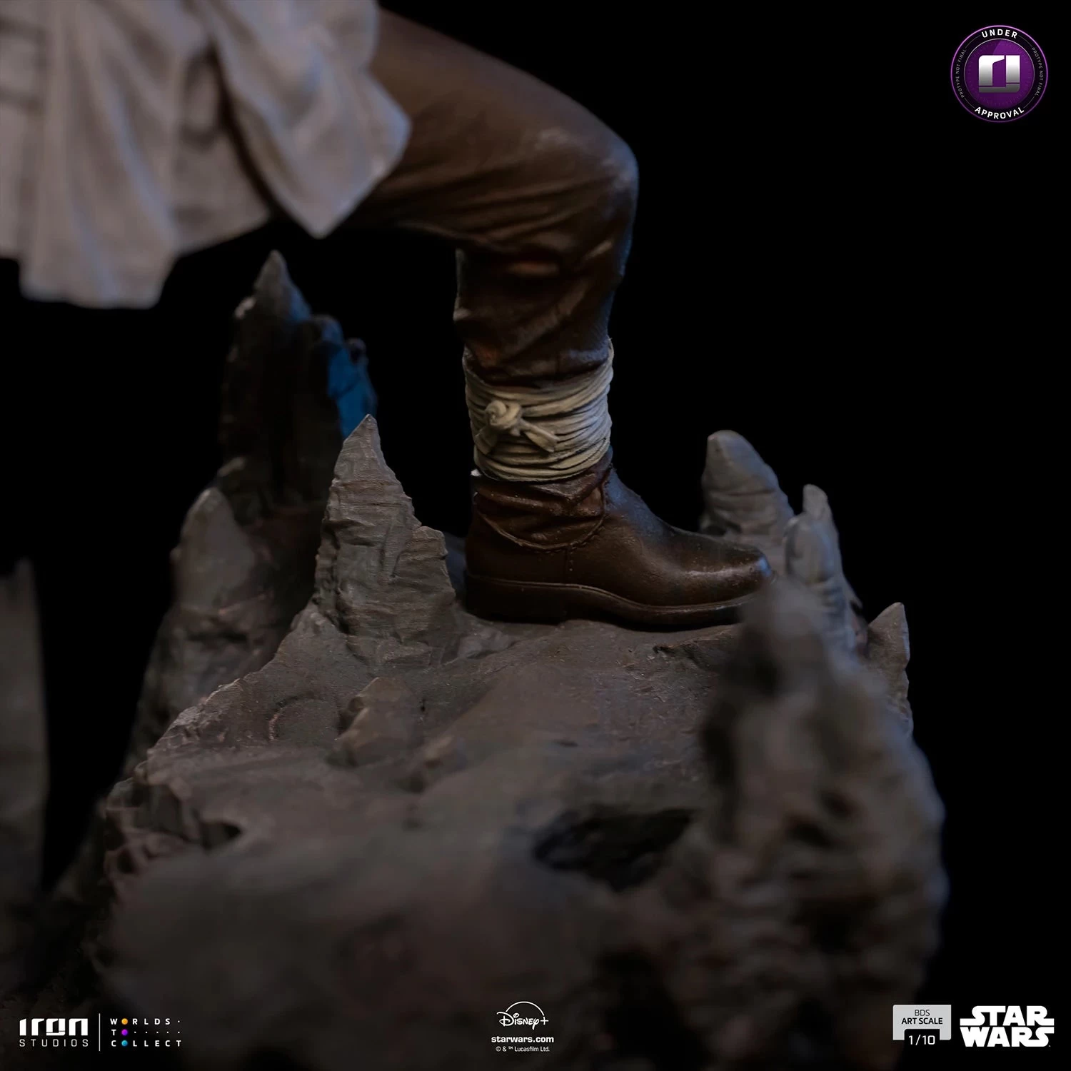 Over the arid terrain of a nameless rocky moon, during the Empire’s reign, a once powerful Jedi master faces his former disciple in a fight in a labyrinth of stone plateaus. Battling a Sith Lord, his relentless adversary is driven by hatred and fed by the Dark Side of the Force in his search for revenge. The old knight, although hurt, duels with his Lightsaber, motivated by the memories of the young twins Luke and Leia, whom he sworn to protect, he then overcomes the pain, reconnecting himself with the Force, and once again beats his former apprentice against all odds. From the praised Star Wars spin-off show from the streaming service Disney+, Iron Studios proudly present their Obi-Wan Kenobi – BDS Art Scale 1:10 Scale Statue, inspired by the sixth and last episode on the first season of the Obi-Wan Kenobi show, that completes the diorama set next to the statue of his rival Darth Vader, previously presented on May the Fourth, in celebration of the Star Wars Day.