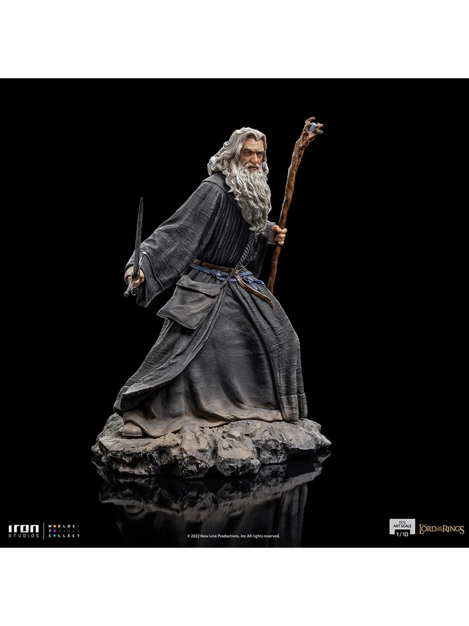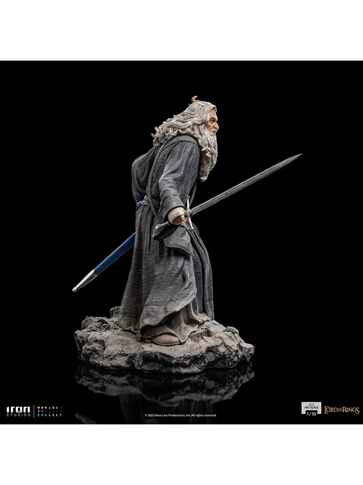 Next to his allies, members of the group called “The Fellowship of the Ring”, the ancient wizard cornered in Balin’s Tomb in the Mines of Moria gets ready for the imminent combat against a legion of Orcs, alongside a dangerous Cave-troll, that aims to attack and destroy them. Wielding his staff in his left hand and his elven sword Glamdring in his right hand, Iron Studios present the statue “Gandalf BDS – The Lord of the Rings – Art Scale 1/10”, produced meticulously faithful to the face features of the English actor Ian McKellen, and having the textures and details from his costume and accessories just like they were presented in the emblematic battle scene from the movie “The Lord of the Rings: The Fellowship of the Ring”. Over a pedestal of the petrified soil of the Mines of Moria, this statue is part of a diorama set that replicates one of the most memorable moments from the first movie derivative from the literary work of J. R. R. Tolkien by director Peter Jackson.
