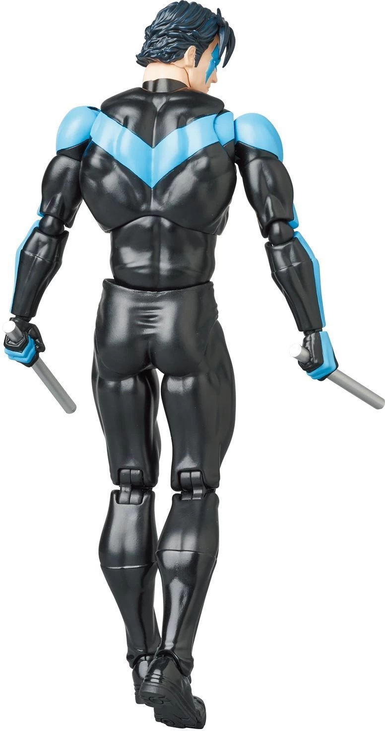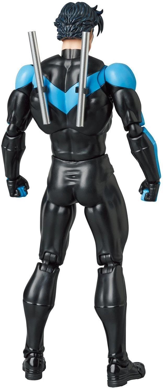As seen in “Batman: Hush,” Nightwing now joins the MAFEX action-figure lineup from Medicom! Nightwing is incredibly posable for all kinds of heroic action; he comes with two interchangeable heads and a variety of interchangeable hands. His baton can be carried on his back; a figure stand with a posing arm is included for airborne action. Order him for your own collection!