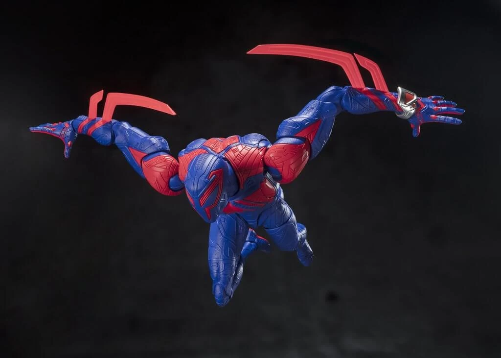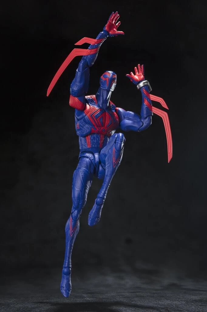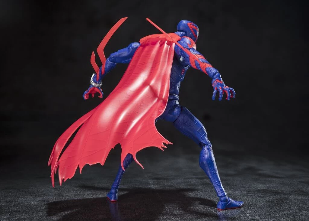 The screen-accurate figure of Spider-Man 2099 includes a newly developed Miguel O’Hara head sculpt with separate rolling eyeball system, an interchangeable masked head, and a specialized body that portrays his hulking physique to complete his look. All the focus remains on the Spider-Man 2099 Suit with luminous reflective patterns in blue to recreate his energy effects, a skull-like Spider logo raised on the chest, spikes on arm, and a translucent red webcape. The figure also comes with amazing accessories such as hands with attacking effect, stylized web accessories in translucent red, a time traveling device, base camp themed backdrop, and a figure stand for dynamic poses.