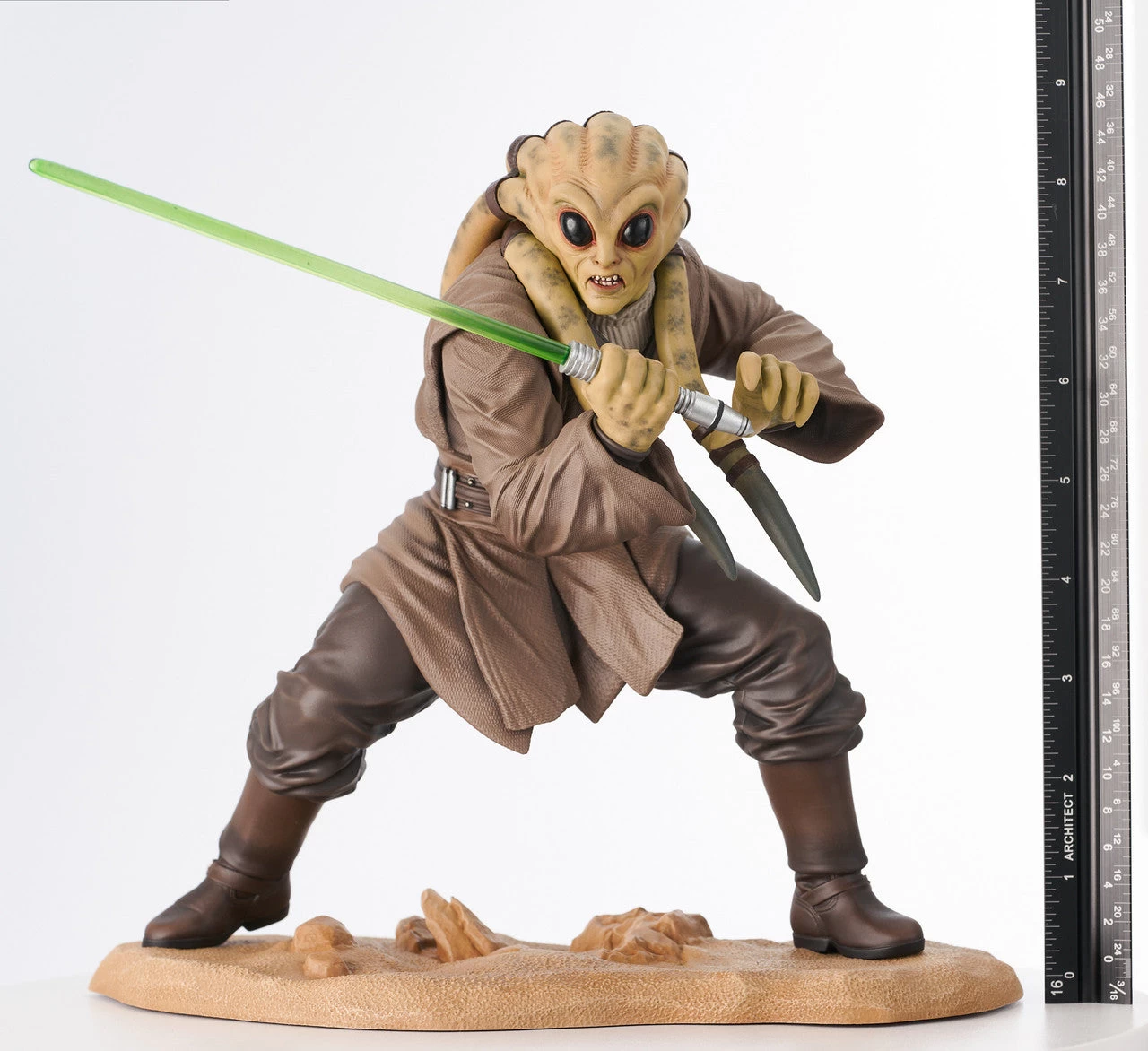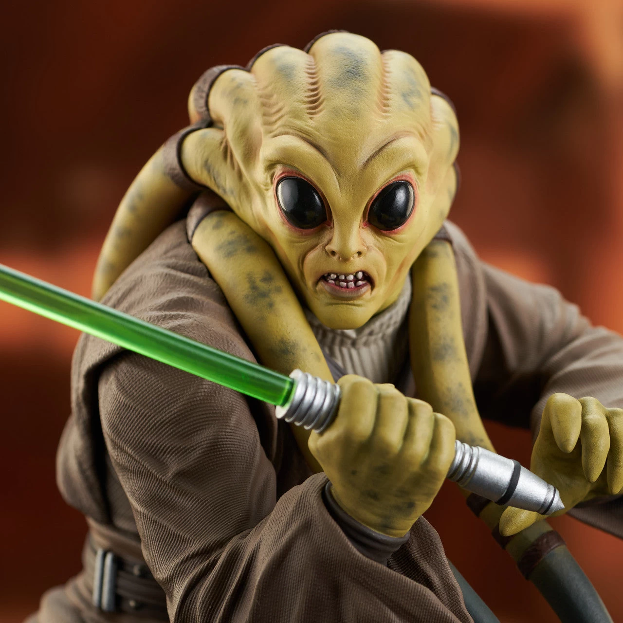 A Gentle Giant LTD release! Straight outta Glee Anselmâ„¢! Few alien Jedi were as distinctive as Kit Fistoâ„¢, the green Nautolanâ„¢ with a head full of tentacles. This 9-inch statue of the Jedi Masterâ„¢ shows him crouched with his green-bladed lightsaber at the ready. Based on his appearance in Star Wars: Attack of the Clones, this sculpture is limited to 3000 pieces and comes packaged with a certificate of authenticity in a full-color box.