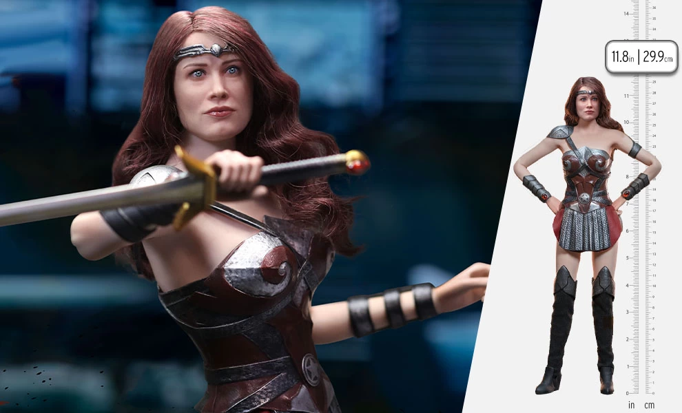 This sixth scale figure of Queen Maeve features a seamless body and has over 30 points of articulation. The headsculpt features an officially approved authentic likeness of Dominique McElligott as Queen Maeve with rooted hair. She is wearing a detailed costume and carries her signature sword.